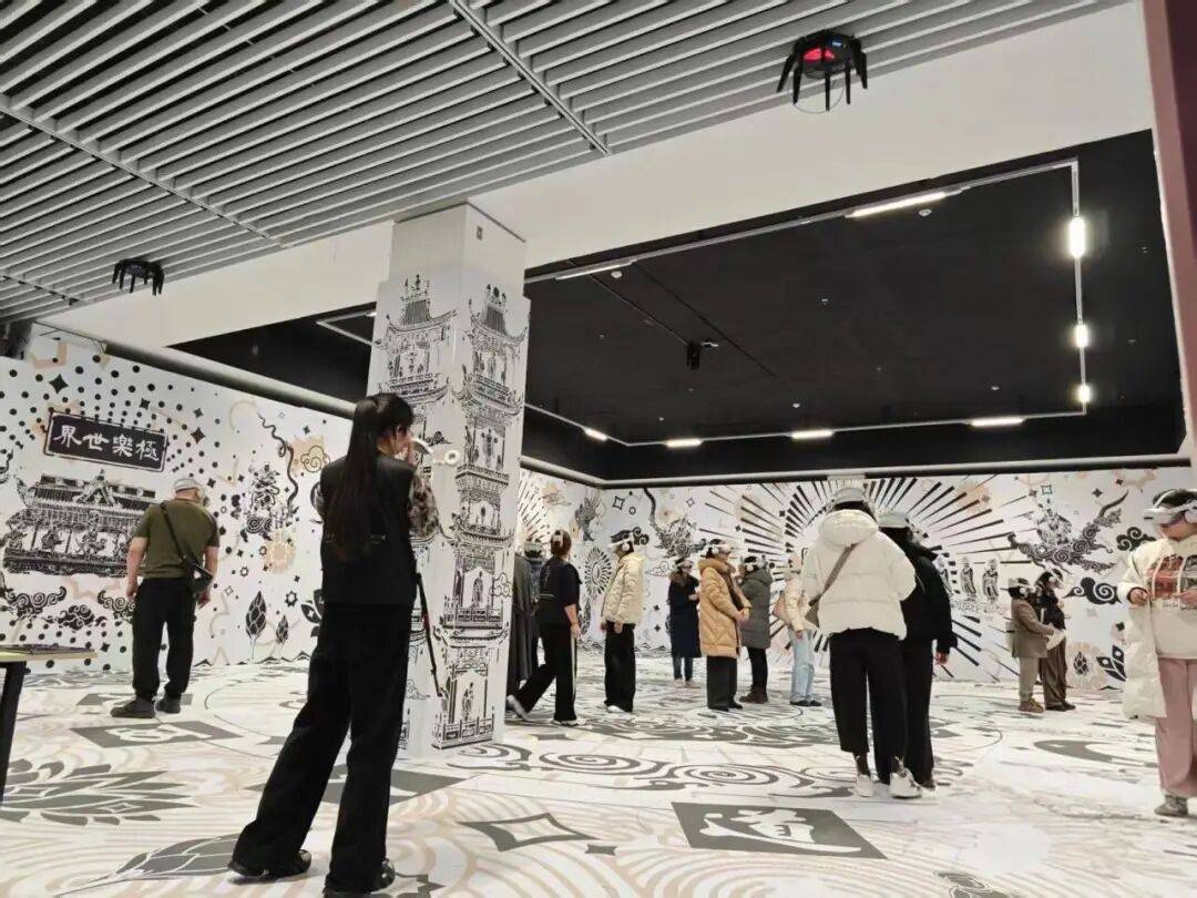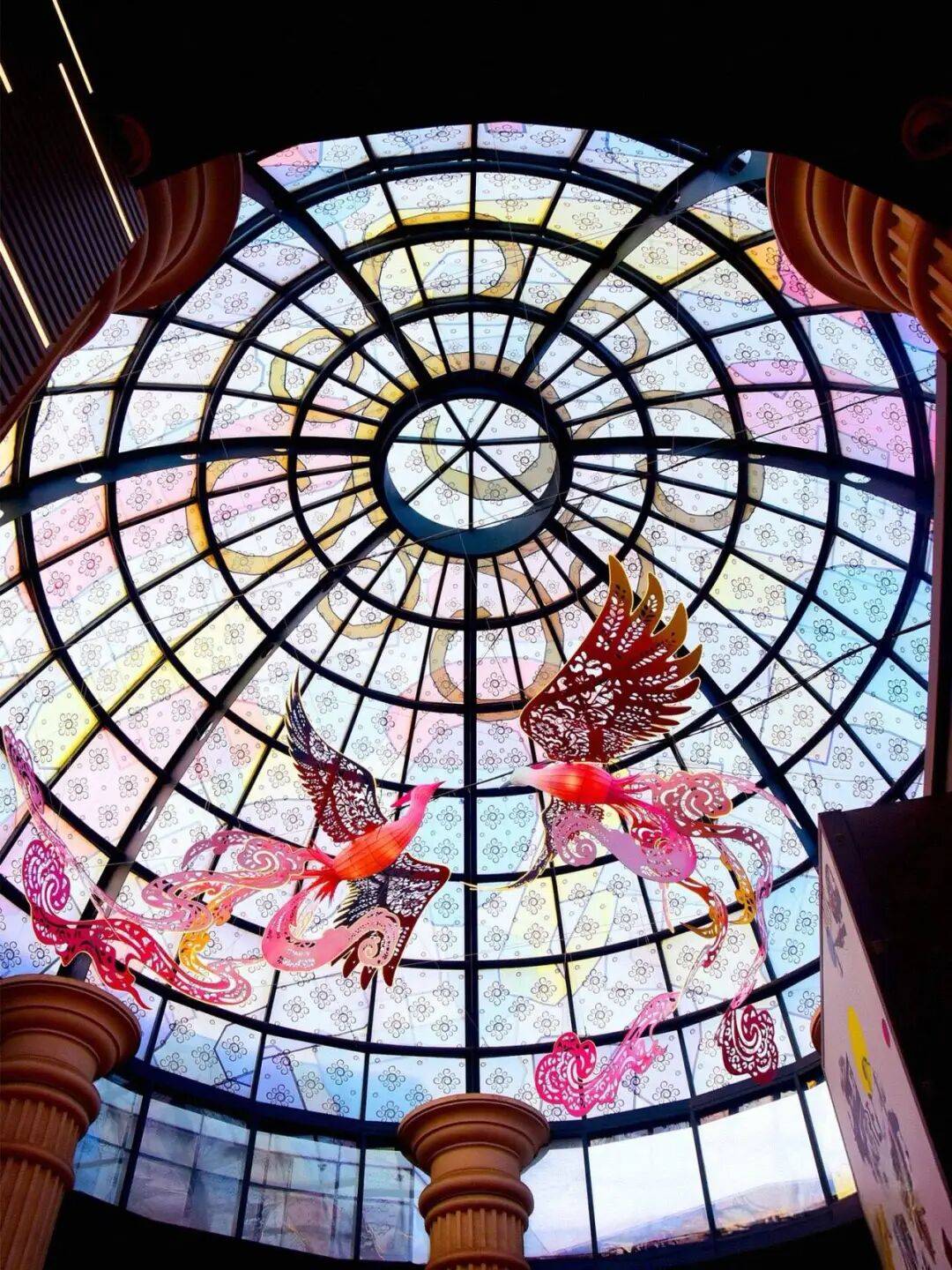 全场剪纸灯光装置以祥瑞神兽为主题,天马引路、貔貅镇守、绶鸟翩跹、锦鲤跃升、青鸟传情、玉兔归家分布在各个区域,为这处国际化地标,增添了些许东方美。