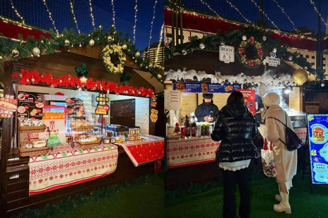 整个市集规模并不算很大,有十几个摊位,可以尝尝热红酒、香蕉巧克力可丽饼,现场氛围特别温馨,尤其傍晚亮灯之后大家都沉浸在节日喜悦里。