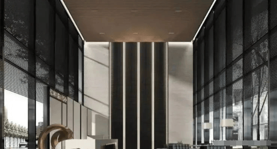 昭示性标识前场与艺术门廊式住宅社区大堂是业主身份转变的空间,改变传统“步入家门才为家”的概念。