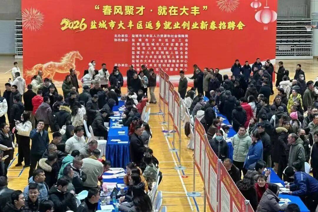 2月22日,大丰区在大丰奥体中心举办 “春风聚才・就在大丰” 返乡就业创业新春招聘会。158家企业提供岗位3800余个,吸引了超过5000名求职者前来咨询应聘,初步达成就业意向1300余人次。