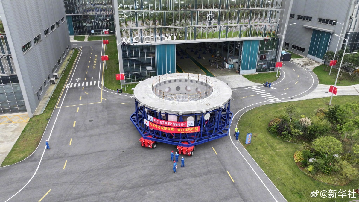聚变能被誉为“终极能源”,其原理是模拟太阳内部的核聚变反应,将轻元素聚合为重元素并释放巨大能量。区别于过去的核聚变实验装置,BEST将实际演示氘、氚等离子体“燃烧”,有望实现世界首次聚变能发电。今年5月该项目工程总装正式启动,因建设现场酷似科幻电影中的“行星发动机”而广受关注。杜瓦则是BEST的核心部件,就像一个巨型“高线摄氏度工作的超导磁体提供隔热保护,使其更好“约束”上亿摄氏度高温的等离子体。