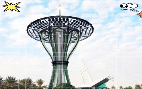 迪拜的Almeisan塔,由Robert Ferry精心设计并竣工,展现了一种全新的环保理念。这座塔完全实现了无污染、无废气排放,且无需外部供电。其独特之处在于,塔顶布置的224个日光反射器能够巧妙地将太阳能汇聚到中心接受器上。此外,塔内还设有一家咖啡馆及观光瞭望台,所有用电均由塔自身提供,同时,多余的电力还能供应给附近的Za’abeel公园使用。