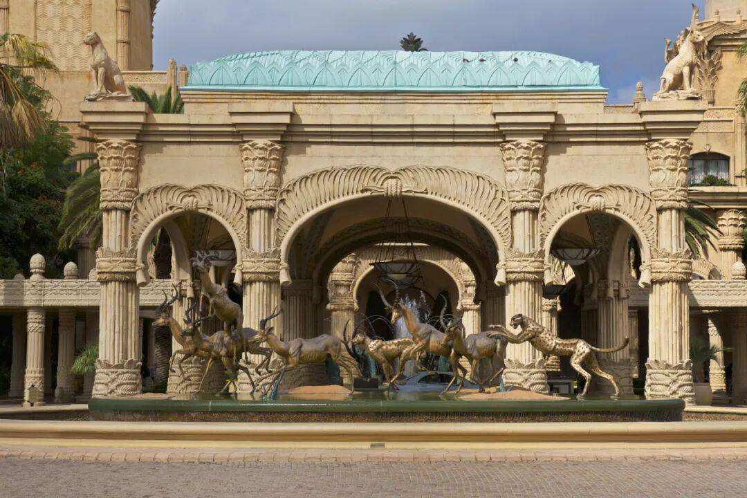 午餐后,驱车前往南半球最大的娱乐中心【太阳城】(入内参观约 2 小时);气度非凡的六星酒店 ——王宫饭店(不入内)、根据神话传说兴建的地震桥(逢整点桥有震动,有如亲临地震现场)以及豪 华娱乐场所、著名的建筑——失落城等。这里有清幽的湖光山色,无数的珍禽异草,游人可漫步其中享受休闲时光。随后驱车返回约翰内斯堡。