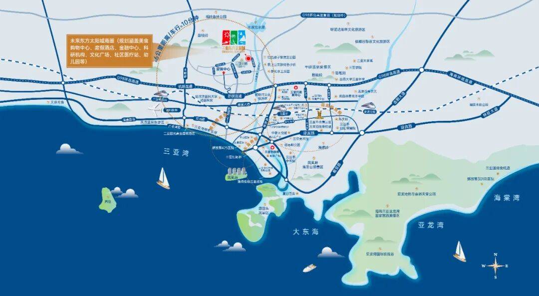 隔河对望三亚梦幻水上乐园,红色娘子军大型文化演艺 公园,槟榔河文化旅游区,约2.5 公里达哈尔滨医科大学鸿森医院,周边商圈规划将涵盖美食购物中心、度假酒店、物流中心、金融中心、科研机构、文化广场、幼儿园、森林公园等多元住假配套。