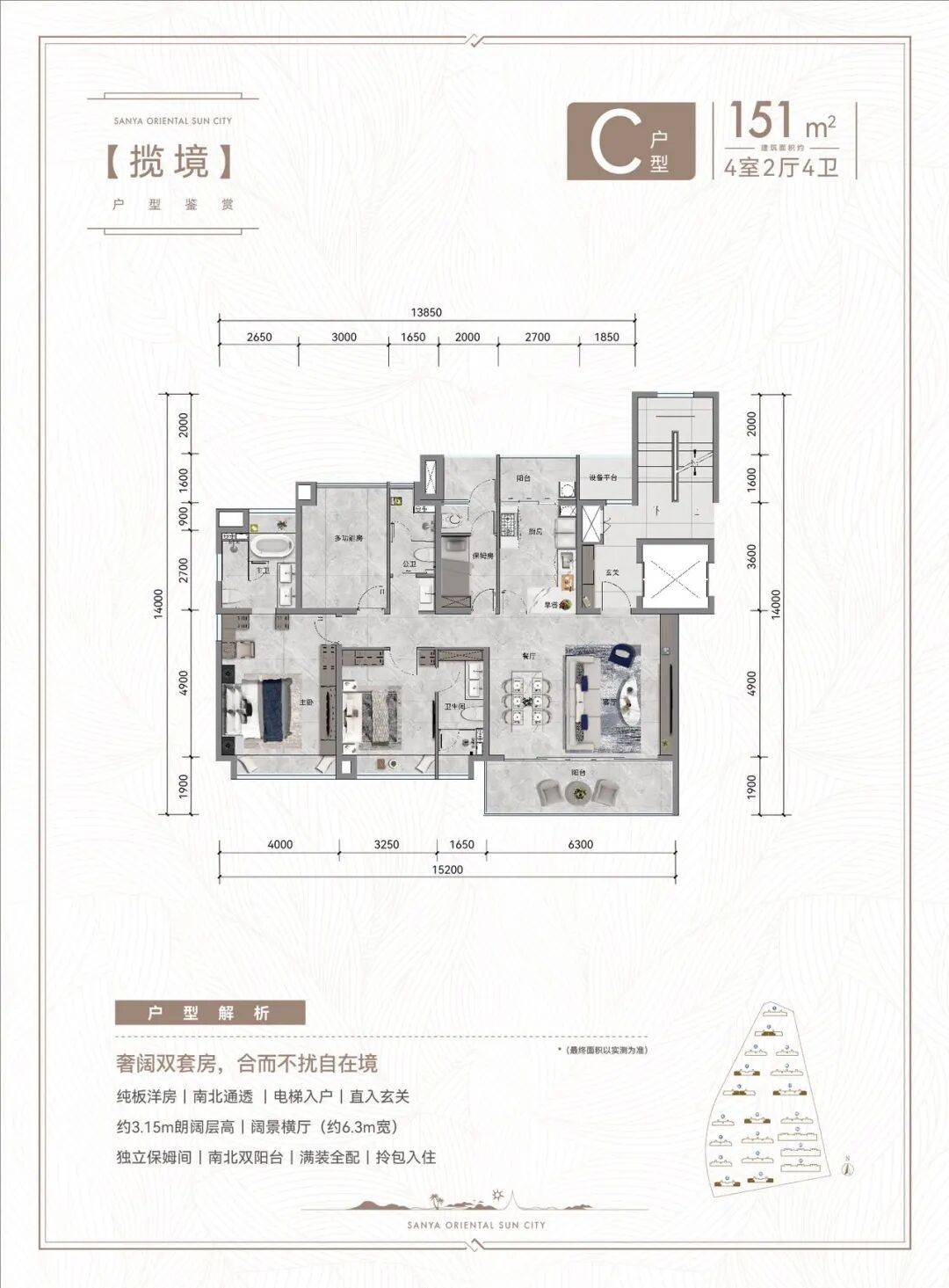 ◎ 约6.3m宽通透大横厅,约3.15m层高全明通透,时刻与阳光清风相伴