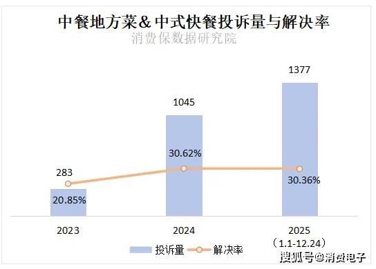 饮食男女,人之大欲存焉。消费者对餐饮的品质和服务尤为关注。据消费保平台最新发布的《中餐地方菜&中式快餐投诉分析报告》,2023年至2025年12月24日,消费保受理的中餐地方菜&中式快餐投诉逐年攀升,累计达2705件,涉诉总金额超220万元,有效解决率仅为29.46%。