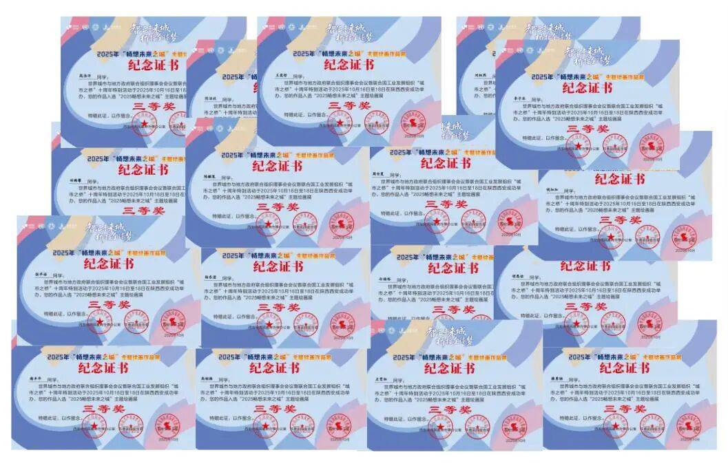 本次大赛中,同学们紧扣 “畅想未来之城” 主题,尽情挥洒创意与才华,作品涵盖太空探索、城市发展、家园建设等多个维度,既展现了扎实的绘画功底,也彰显了新时代少年对未来的无限憧憬与探索精神。此次获奖成果,是同学们不懈努力的回报,是指导教师悉心培育的成果,更是我校素质教育与艺术培养成效的生动体现,将进一步激励全校学子勇于创新、大胆畅想,在艺术的天地中自由翱翔。