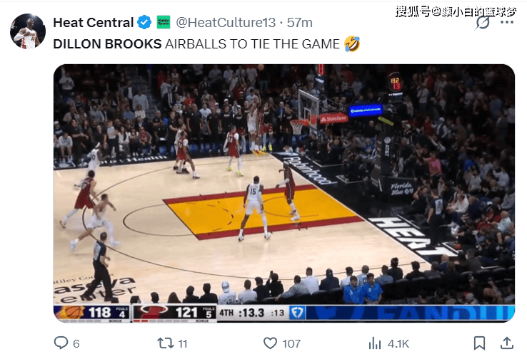 终场前13.3秒狄龙的底角绝平三分不中,他还在空中拉着威金斯一同倒地,他应该是想要制造一个三分犯规,但这个动作太明显了。
