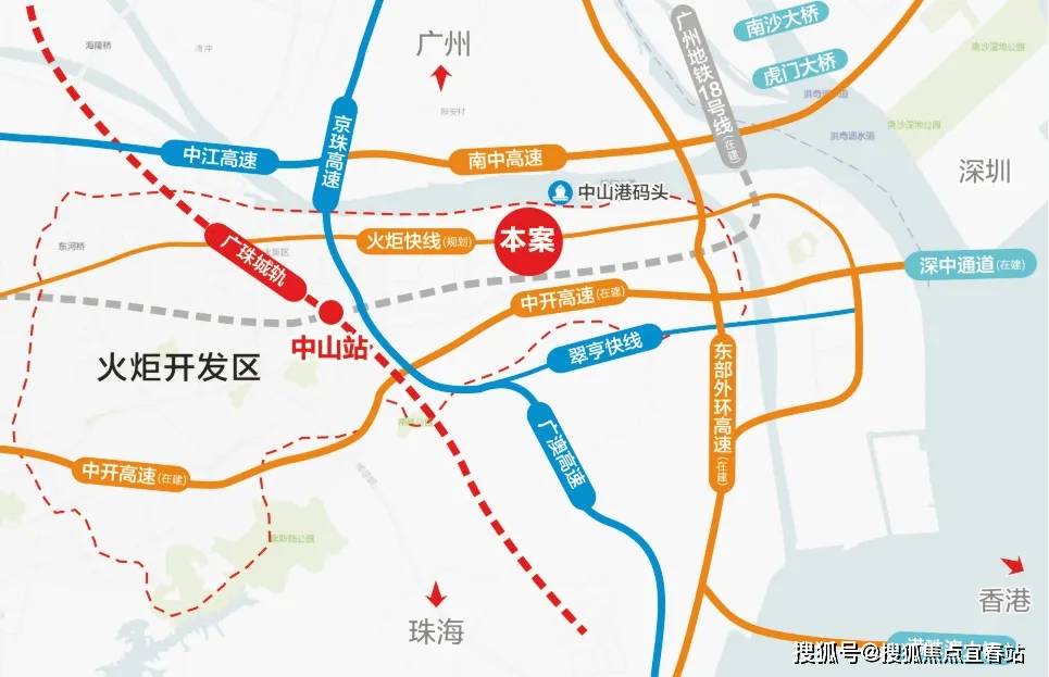 【交通枢纽】一桥通前海,经沿江东路(规划中)通达深中通道口,深圳半小时生活圈;经逸仙路转博爱路20分钟即达中山城区,双铁无缝衔接国际大都市缤纷生活,海陆空立体交通畅达八方,一小时大湾区生活圈。