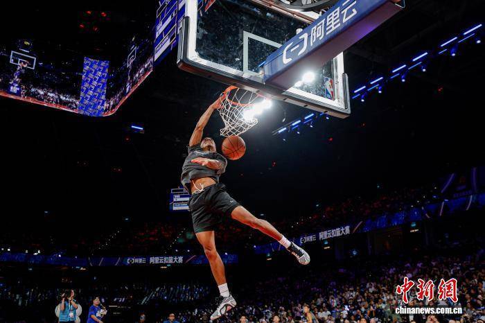 10月11日,NBA球迷日2025在威尼斯人综艺馆举办。图为当时的扣篮表演。(NBA中国 供图)