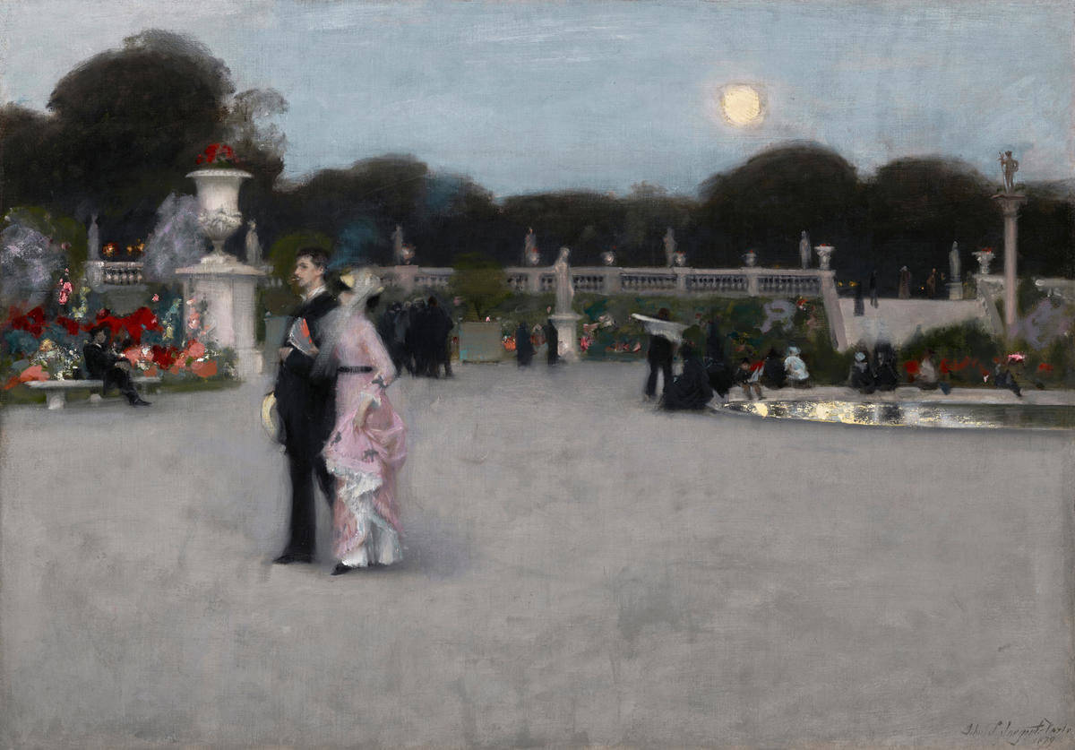 除了经典的肖像画,展览还展示了他描绘巴黎城市风光(如《在卢森堡公园》)、旅行写生以及上流社会社交圈的作品。