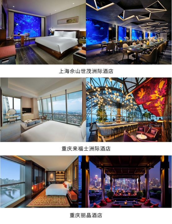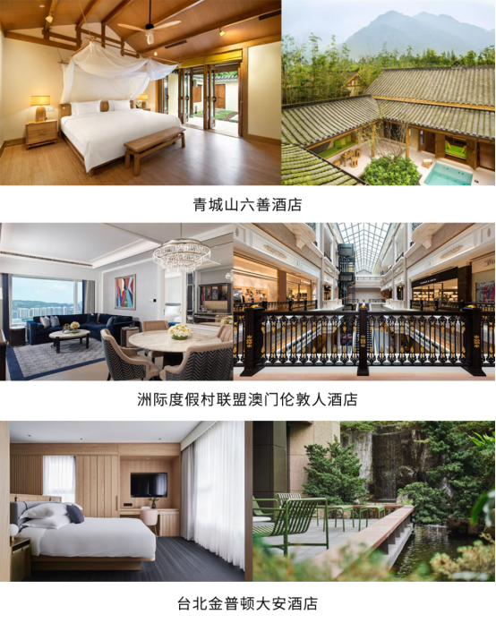 第二行从左至右:青城山六善酒店,洲际度假村联盟澳门伦敦人酒店,台北金普顿大安酒店