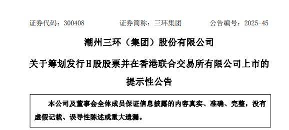 就在同一天,三环集团发布公告,宣布赴香港IPO,进一步推进公司全球化战略布局。