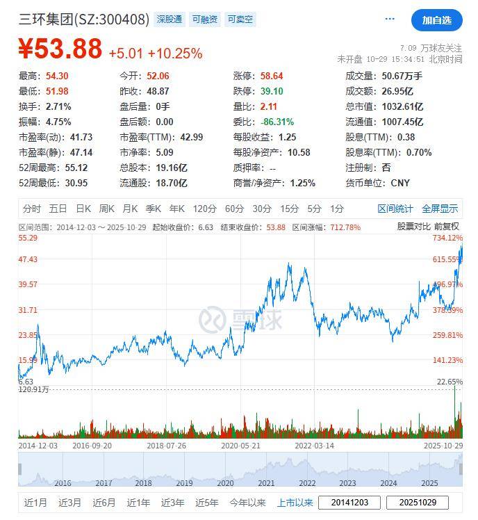 公开资料显示,三环集团成立于1970年,总部位于潮州,是全国领先的电子元件、先进材料产业基地。公司于2014年12月在深交所上市。