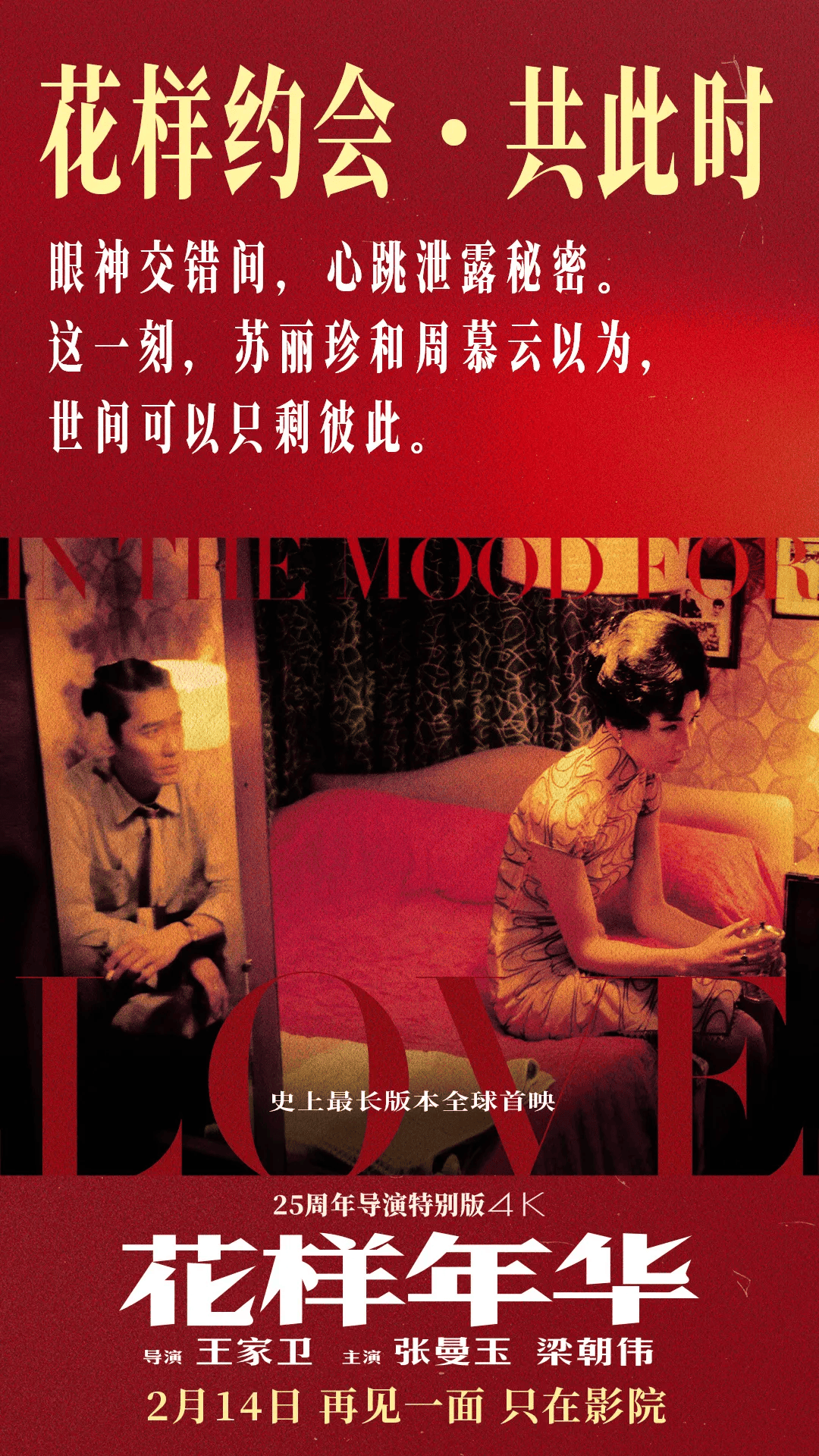 王家卫《花样年华》25周年纪念版成为年度重映标杆。影片新增5分钟从未公开的片段,并微调结局节奏,配合“仅限影院、永不登陆流媒体”的稀缺策略,在情人节档期精准触达影迷,最终斩获6180万元票房,领跑全年重映榜。