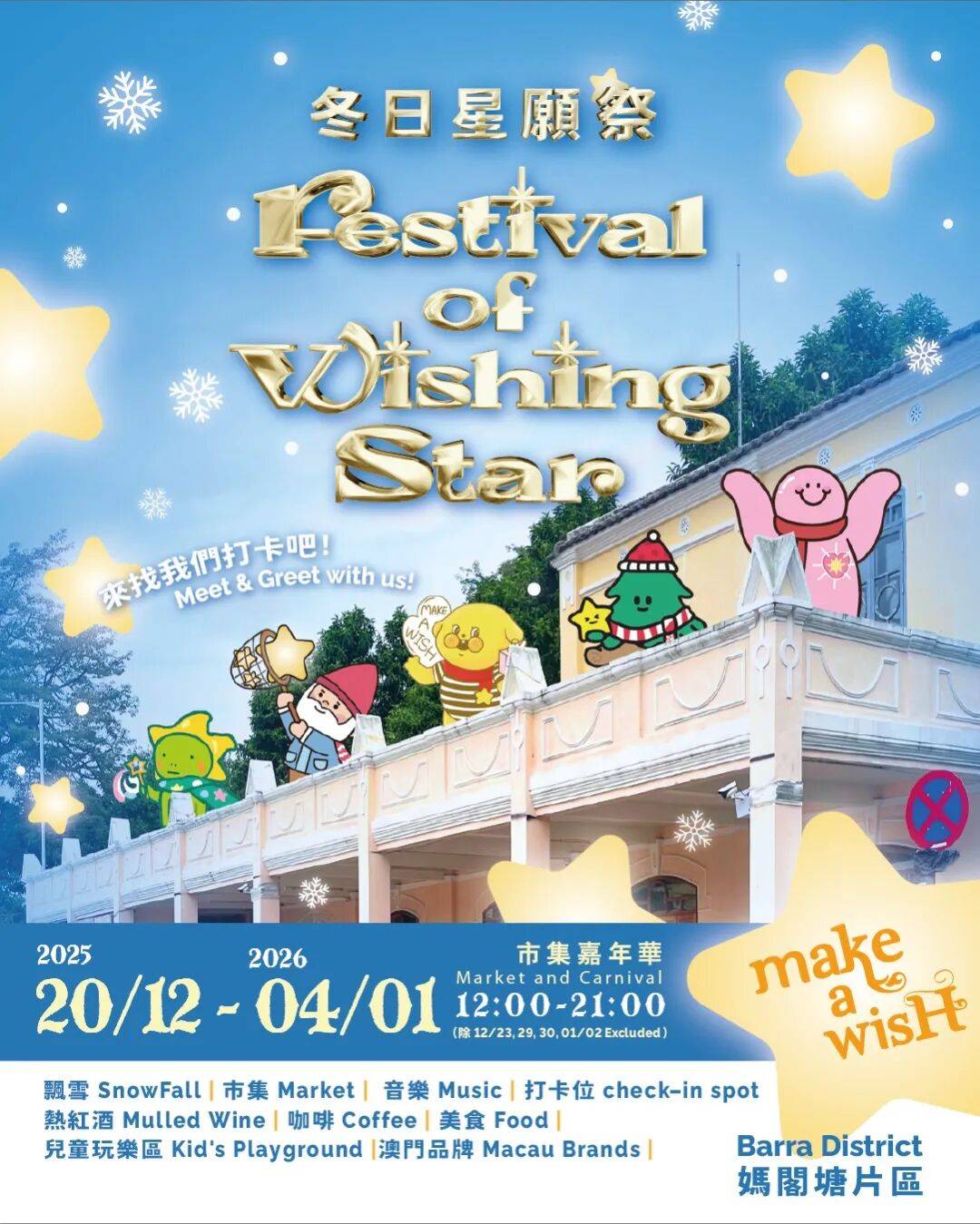 另外,由美高梅主办、澳门插画师协会承办的“冬日星愿祭”已正式开启,汇聚各种精彩元素,包括市集、音乐、咖啡、美食等,还有儿童玩乐区和众多打卡位,欢迎来嘉年华感受节日气氛!