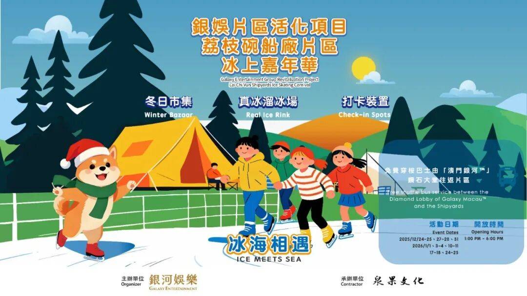 另外,银娱片区活化项目-荔枝碗船厂片区将举行冰上嘉年华,除了冬日市集,还有真冰溜冰场和多个打卡装置,欢迎到场一起体验冰海相遇的奇妙旅程。游客可在澳门银河乘搭免费穿梭巴士,直达荔枝碗船厂,感受冬日气氛。