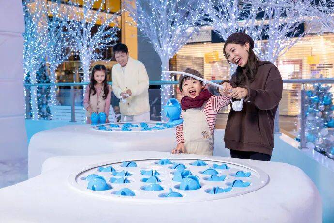 钻石大堂的“金耀流光”互动打卡装置,设有飘雪特效的雪景球,启动按键,细腻的雪花轻盈飞舞;时尚大道中有AR梦幻雪境体验!东翼广场也有圣诞限定乒乓球小雪人装饰登场,可爱极了~